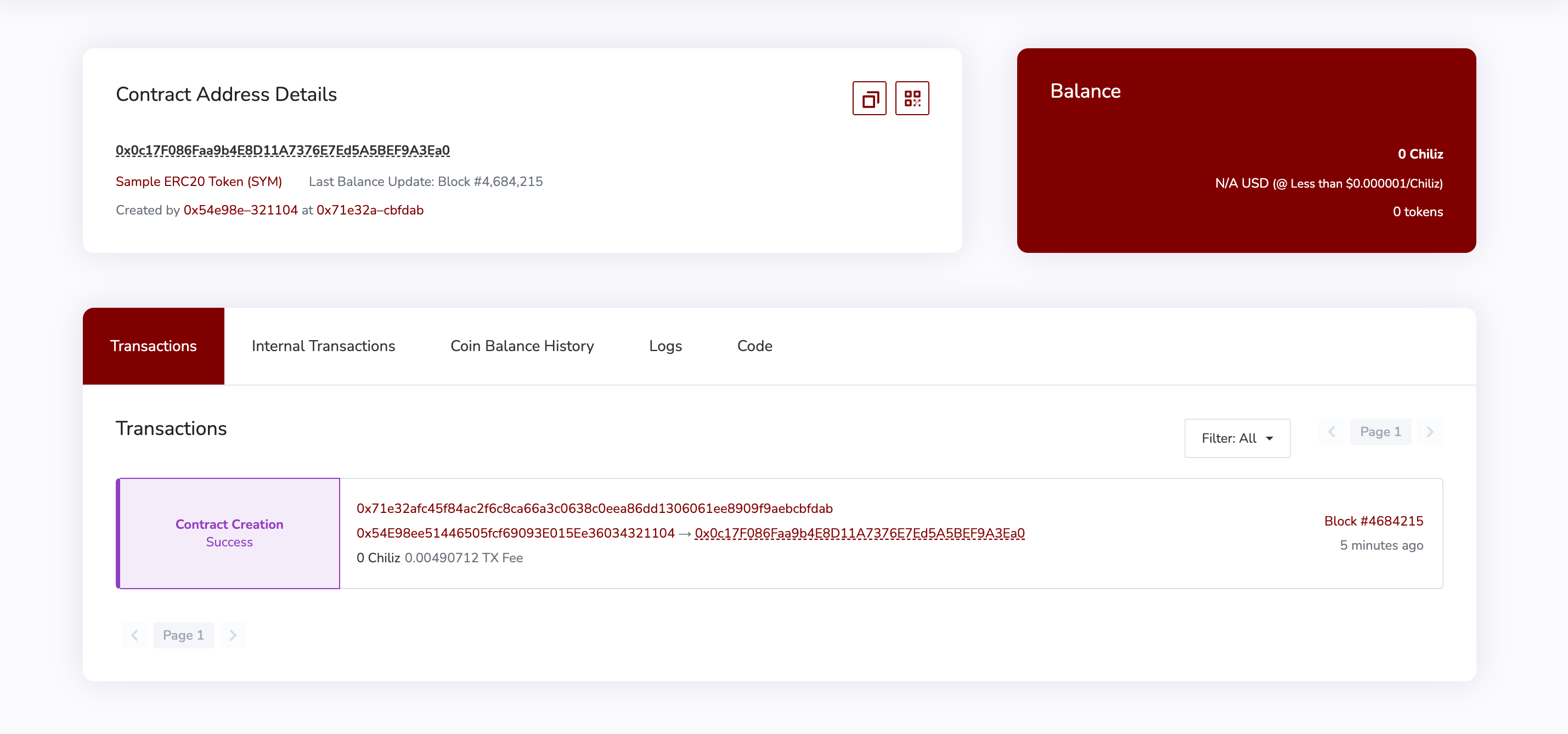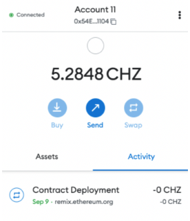 Seu contrato está implantado na Blockchain Chiliz.