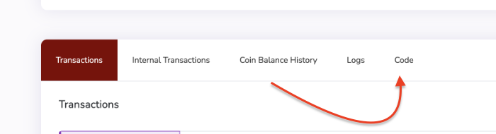 Selecione a aba Code para começar a verificar seu contrato.